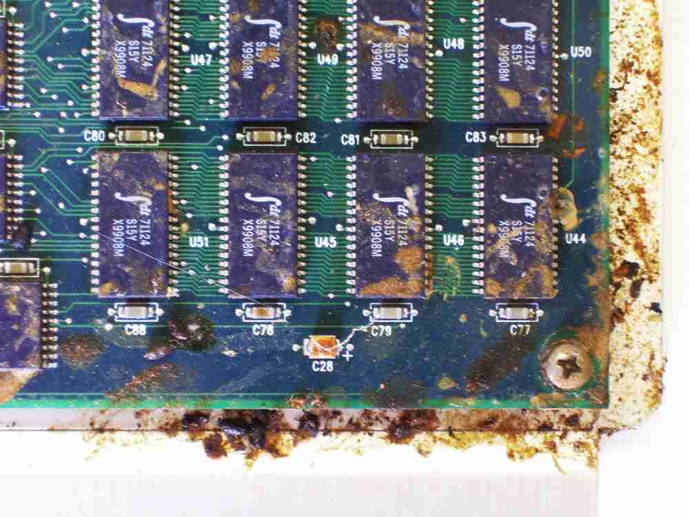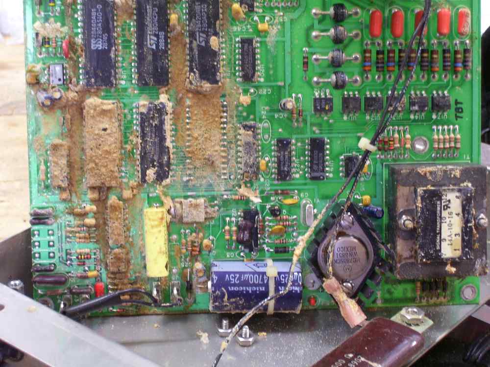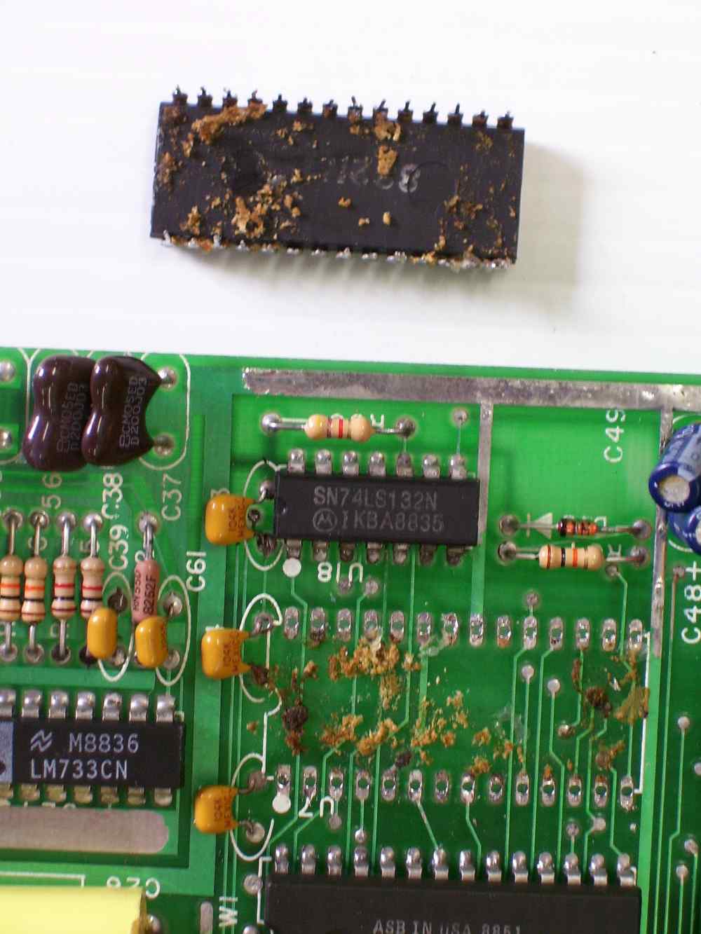 under all the IC's, so that meant removing all of them !!! and cleaning